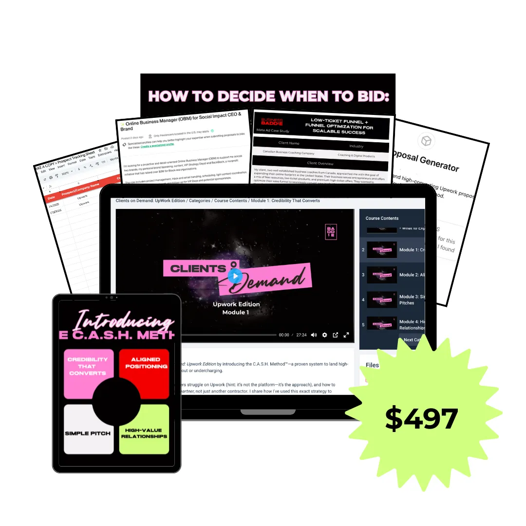 Clients on Demand: Upwork Edition isn’t just about learning a platform. It’s about putting you back in control of your pipeline and your income.