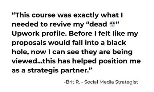 This course is for any high-ticket service provider, freelancer, or consultant who’s serious about getting paid like the expert they are. As long as you see your ideal jobs on Upwork, this course is a fit for you.